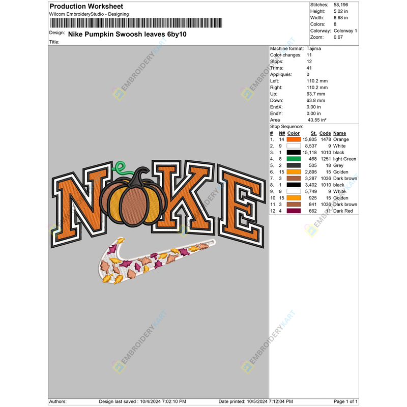 Thank you so much for visiting and showing interest in Nike Pumpkin Swoosh leaves Halloween Embroidery design
