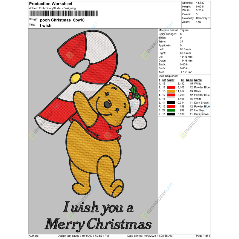 Pooh Christmas Embroidery design