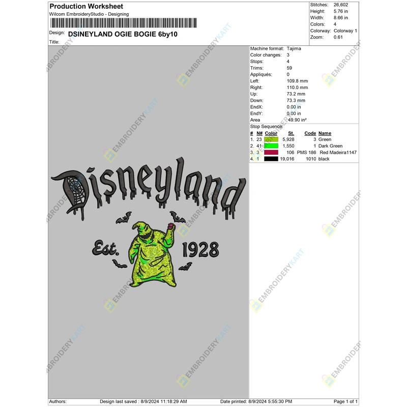 Thank you so much for visiting and showing interest in Disneyland Oogey boogey Halloween Embroidery file.