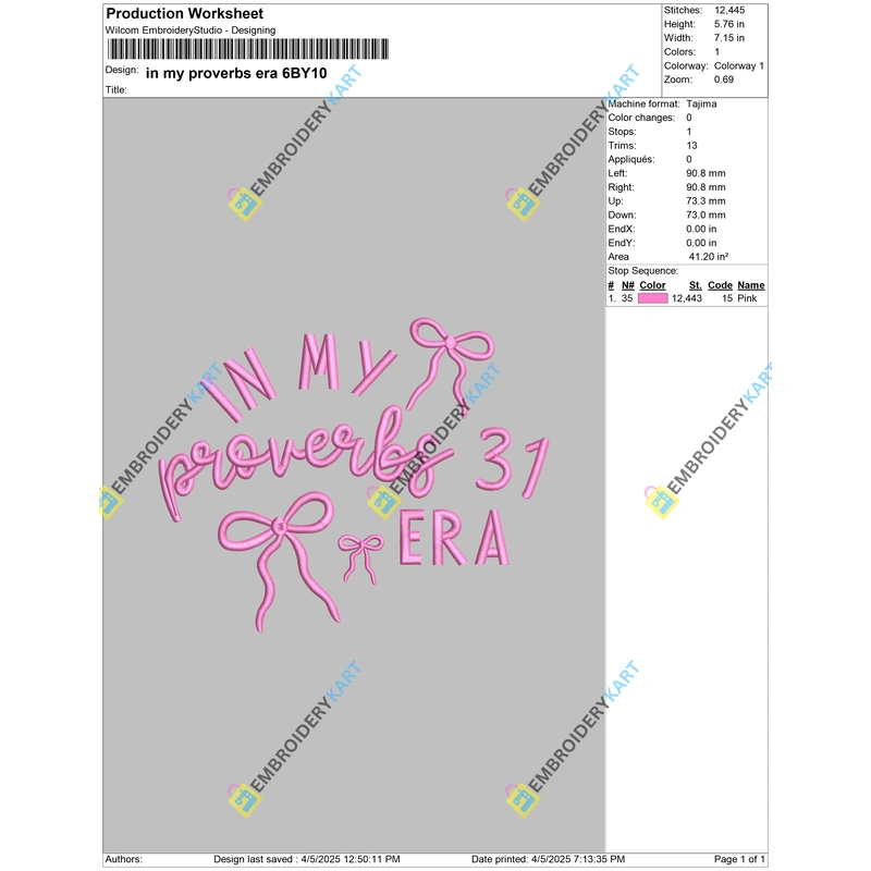 Thank you so much for visiting and showing interest in In my proverbs era Embroidery Drsign