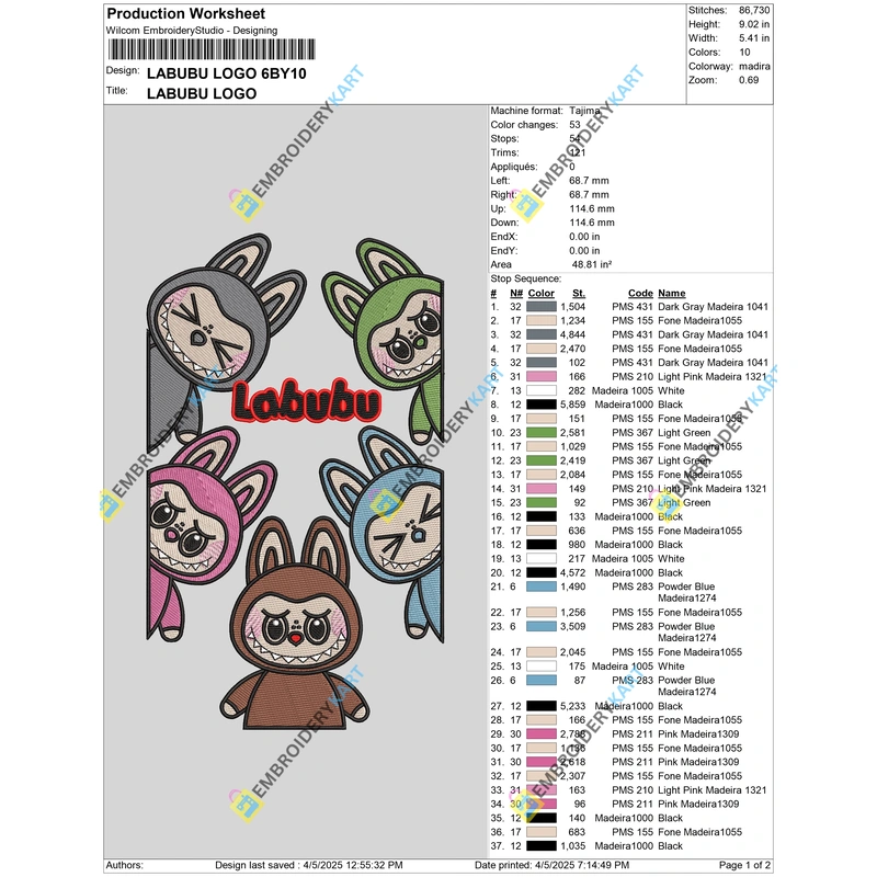 Thank you so much for visiting and showing interest in Labubu Cartoon Embroidery Drsign