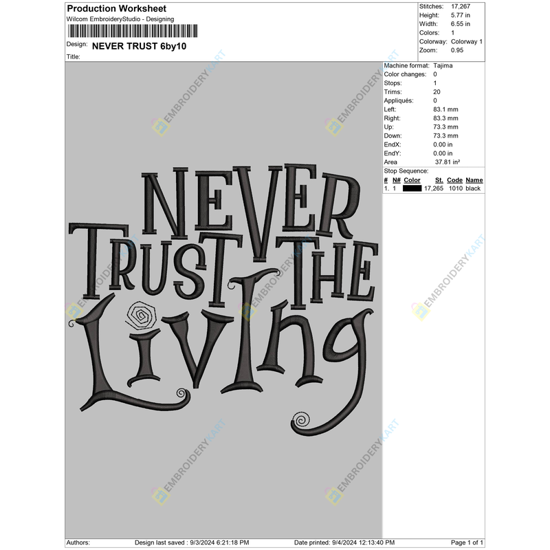 Thank you so much for visiting and showing interest in NEVER TRUST Halloween Embroidery design