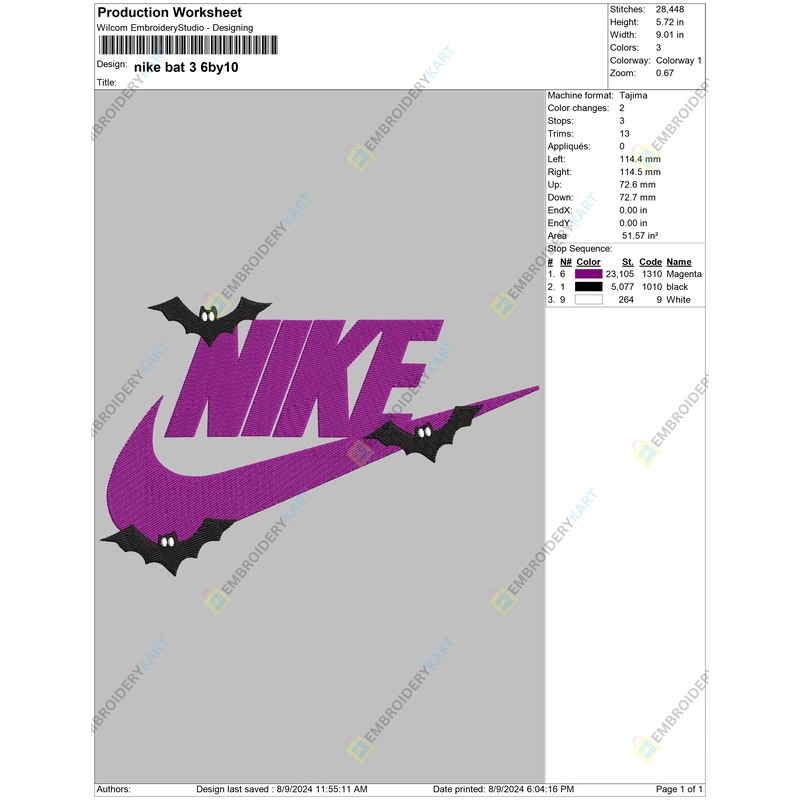 Thank you so much for visiting and showing interest in Nike 3 Bat Halloween Embroidery file