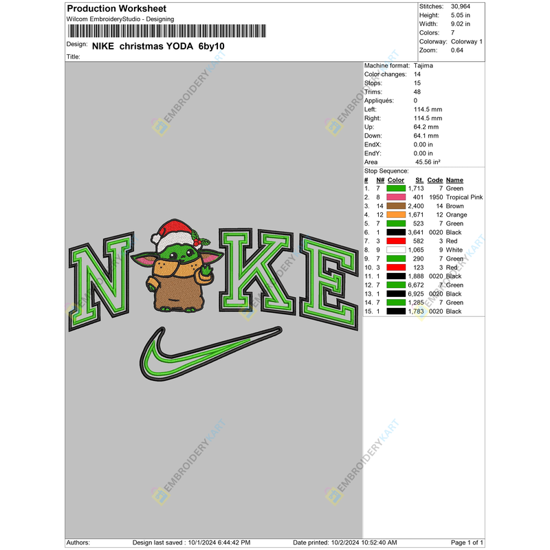 Thank you so much for visiting and showing interest in NIKE Christmas YODA Embroidery design