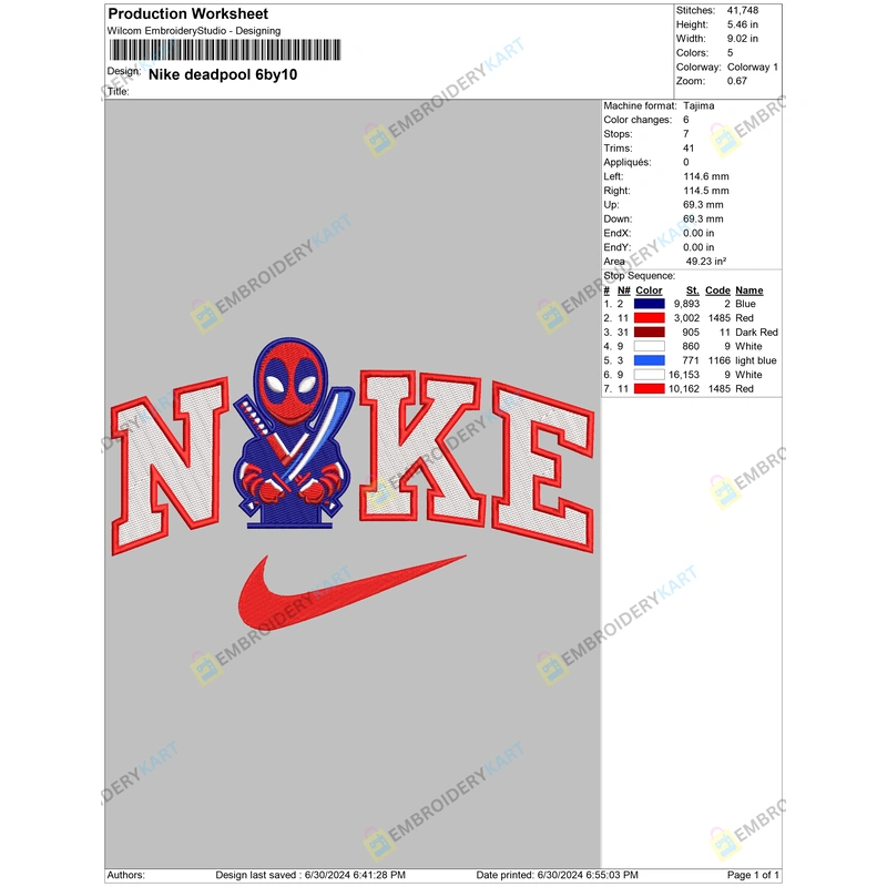 Thank you so much for visiting and showing interest in Nike Deadpool Embroidery File.