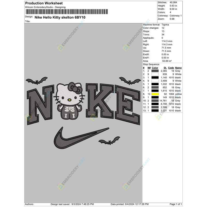Thank you so much for visiting and showing interest in Nike Hello Kitty skelton Halloween Embroidery design