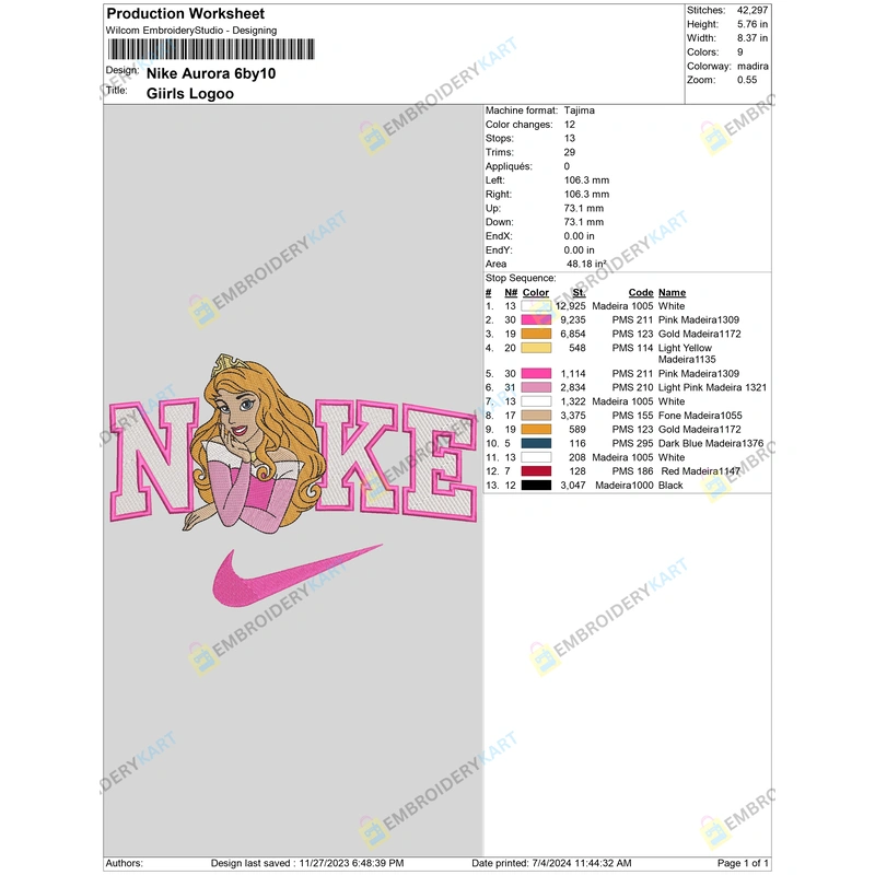 Nike Princess Aurora Embroidery File Nike Princess Aurora Embroidery File