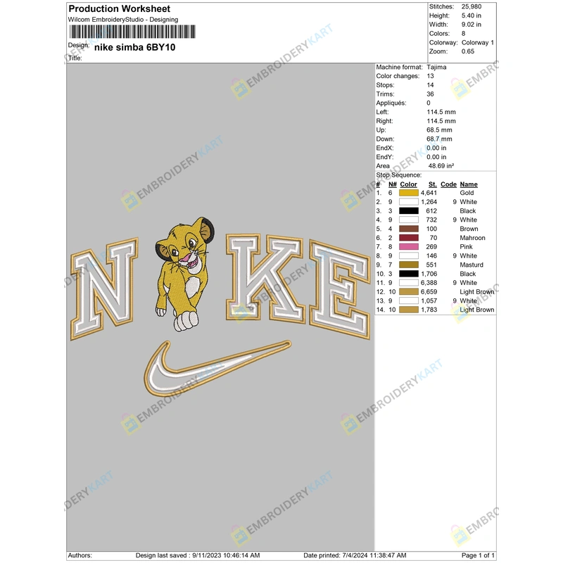 Thank you so much for visiting and showing interest in Nike Simba Embroidery Design.