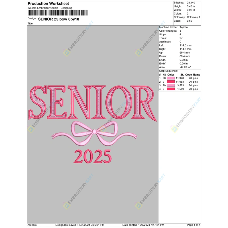 Thank you so much for visiting and showing interest in Senior 2025 With Bow Embroidery Design